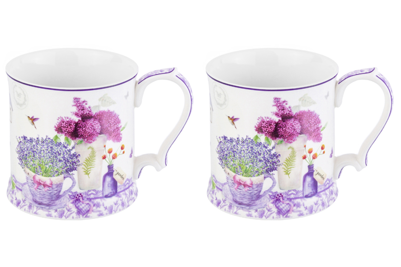 БЫЛО 856 руб! Набор 2 кружек 380 мл 12,3*9*9 см "Лаванда" NEW BONE CHINA