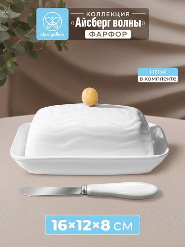 БЫЛО 884р! Масленка 16*12,2*8,3 см "Айсберг волны" + нож