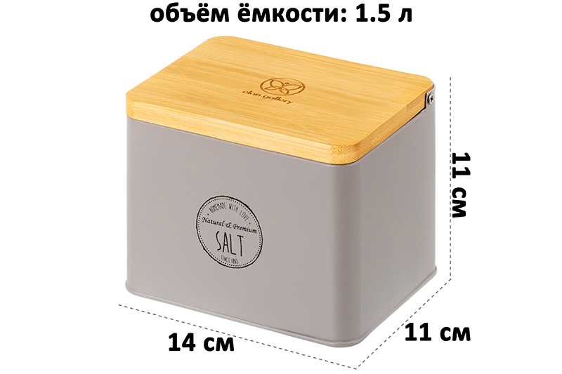 Емкость для хранения 1,5 л 14*11*11 см "SALT" с бамбуковой крышкой, серая
