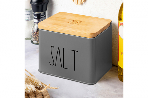 Ёмкость для соли Elan Gallery 14х11х11 см выполнена из качественного металла, что обеспечивает прочность и долговечность использования. Объём – 1,5 литра. Банка серого цвета украшена надписью "Salt" ("Соль"), имеет крышку из натурального бамбука. Бамбуковая крышечка позволяет сохранить свежесть и аромат продуктов, а также защищает содержимое от пыли и влаги. Металлическая баночка для сыпучих продуктов позволит эстетично хранить соль на вашей кухне и станет элементом её декора. Солонку можно использовать для любых продуктов, например, пищевой соды, специй или приправ. Декоративная посуда поможет навести порядок на вашей кухне, ее стильный дизайн подойдет к любому интерьеру. Не рекомендуется применять абразивные моющие средства. Не использовать в СВЧ и ПММ. Станет приятным подарком для хозяйки, которая ценит красивый кухонный инвентарь. Такая посуда станет настоящим украшением вашей кухни и поможет создать в доме порядок и уют!