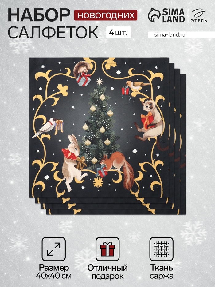 Салфетки с новогодним принтом для создания волшебной атмосферы праздника! Набор из четырёх текстильных аксессуаров со сказочным дизайном поможет оформить стол для рождественского ужина или семейного торжества. Плотная хлопковая основа с саржевым переплетением обеспечивает защиту поверхности и сохраняет внешний вид после многократного использования.