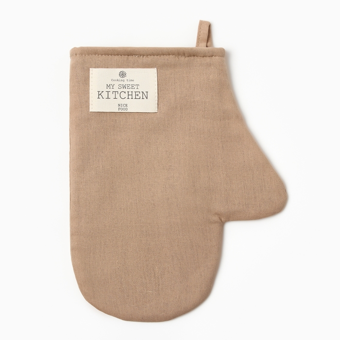 Варежка-прихватка «Этель» ECO, бежевая, 20×28 см, 70% хлопок, 30% лён, ватин 250 г/м²