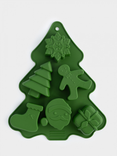 Форма для выпечки кексов, 23х18 см, 6 отд, силикон, зеленая, Елка, Muffin