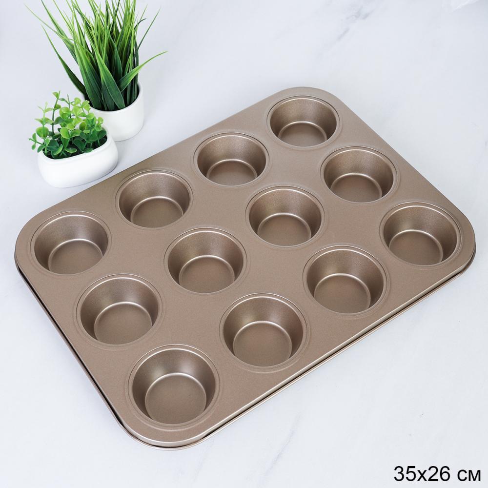 Форма для выпечки кексов и капкейков 12 ячеек 34х26 см / d-6;h-3 / RSD-51 /уп 60/ 0.362/ светлое антипригарное покрытие/ 715613/