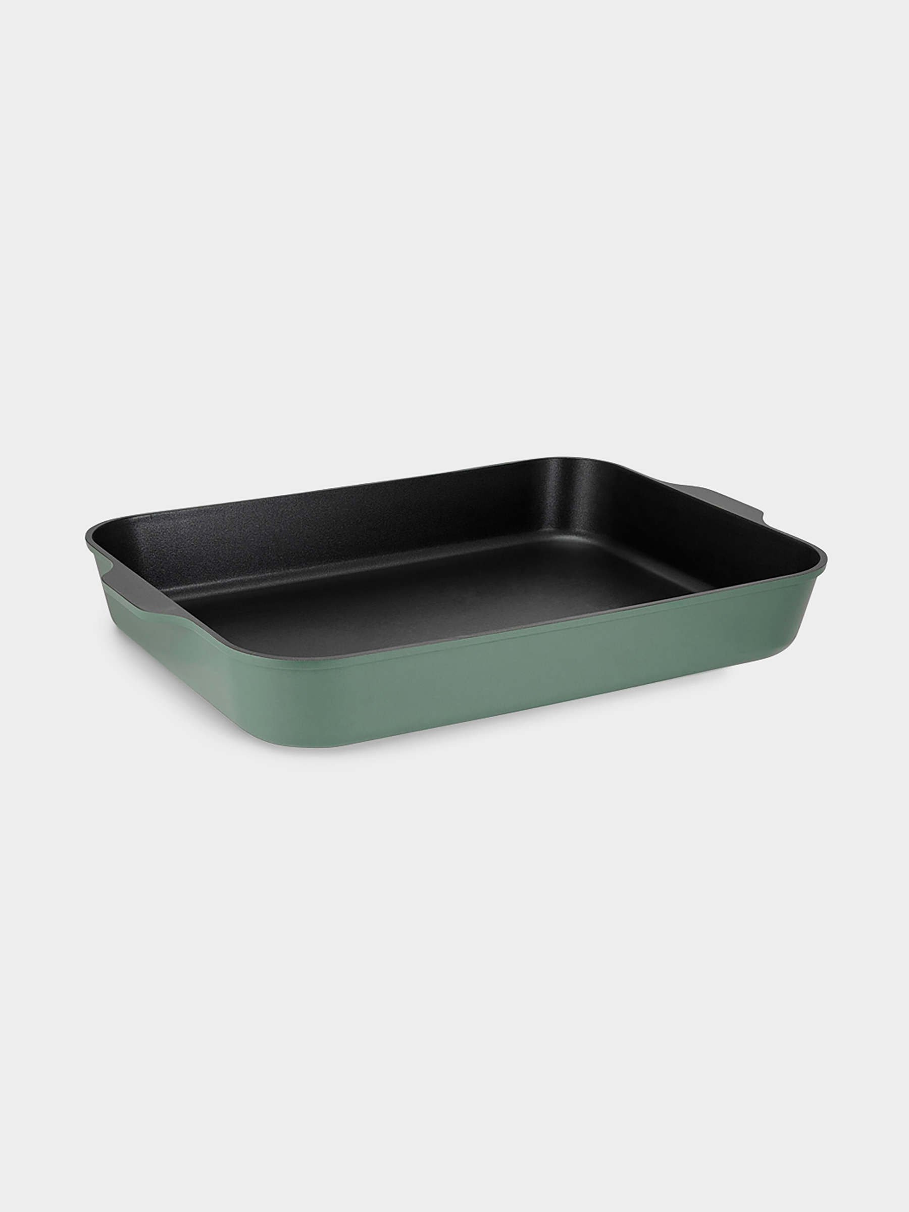 Форма для запекания, 38х28,5х5,5 см, с покрытием, алюминий, зеленая, Agile. Материал: алюминий (литой) с антипригарным покрытием. Форма для запекания из литого алюминия с антипригарным покрытием. Для всех типов плит, включая индукционные. Можно мыть в ПММ. Использовать в духовке до 210 градусов. 3359