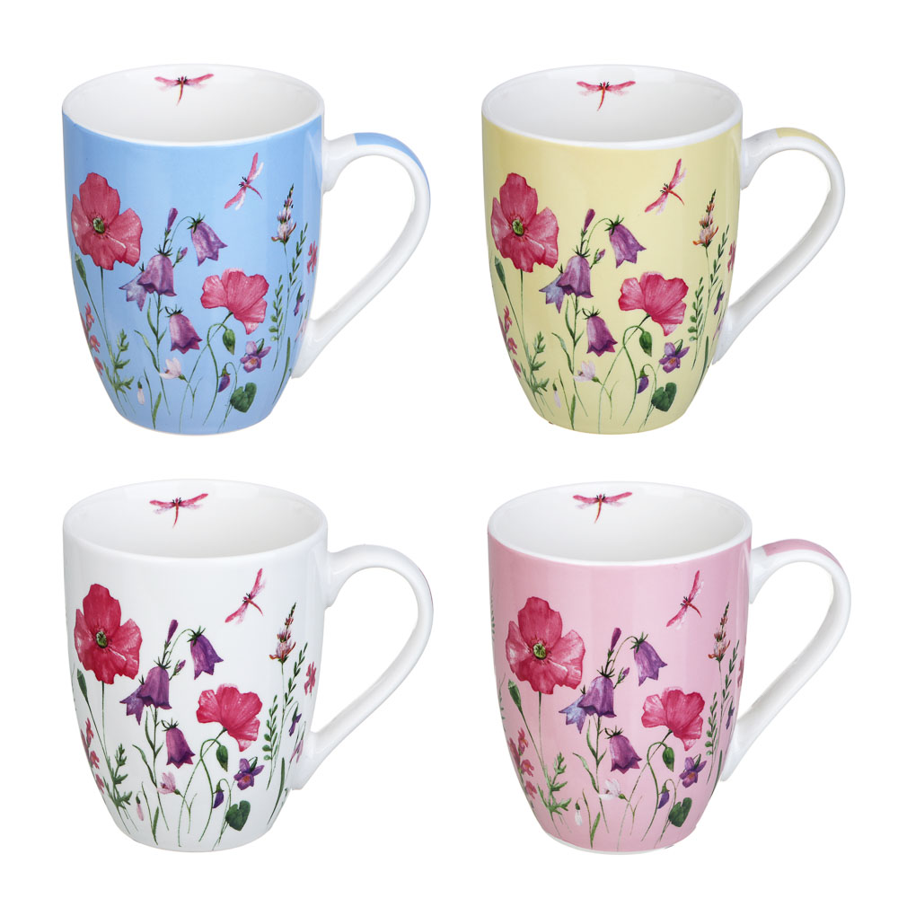 Кружка 350мл Соцветие, фарфор, 4 цвета