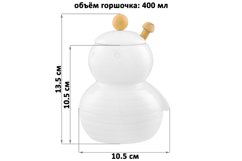 Горшочек для хранения меда «Пчёлка» размером 10,5х9,5х13,5 см и объёмом 400 мл с крышкой и бамбуковой палочкой выполнен из высококачественного фарфора. Специальная палочка для меда (веретено) изготовлена из натурального бамбука. Объём горшочка позволяет перелить в него стандартную банку меда, а интересный дизайн украсит вашу сервировку в будни или на праздник. Не рекомендуется применять абразивные моющие средства. Без бамбуковых деталей медовый бочонок можно использовать в посудомоечной машине. Бамбук нельзя замачивать! Поставляется в картонной коробке. В серии фарфоровой посуды с использованием бамбука представлен широкий ассортимент товаров для сервировки стола, которые впишутся в любой интерьер благодаря лаконичному дизайну, натуральным материалам и высокой функциональности. Такому подарку будет рада любая хозяйка!