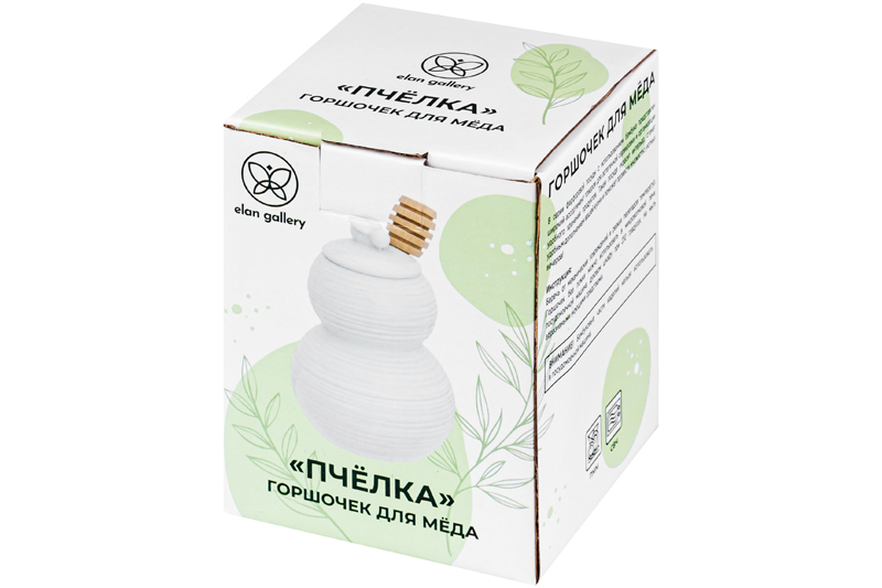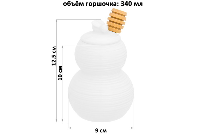Горшочек д/меда 340 мл 9*9*12,5 см "Пчелка" + дерев. палка