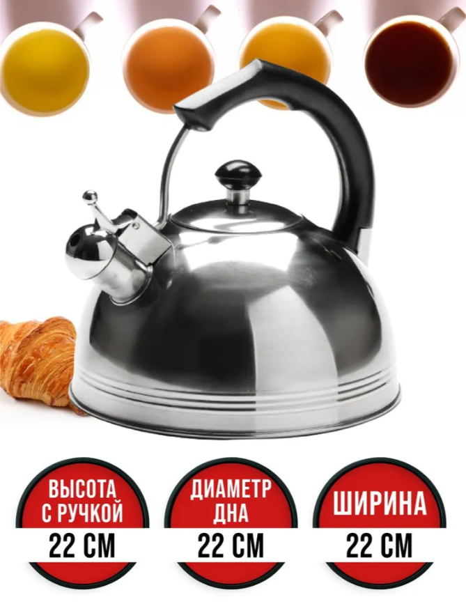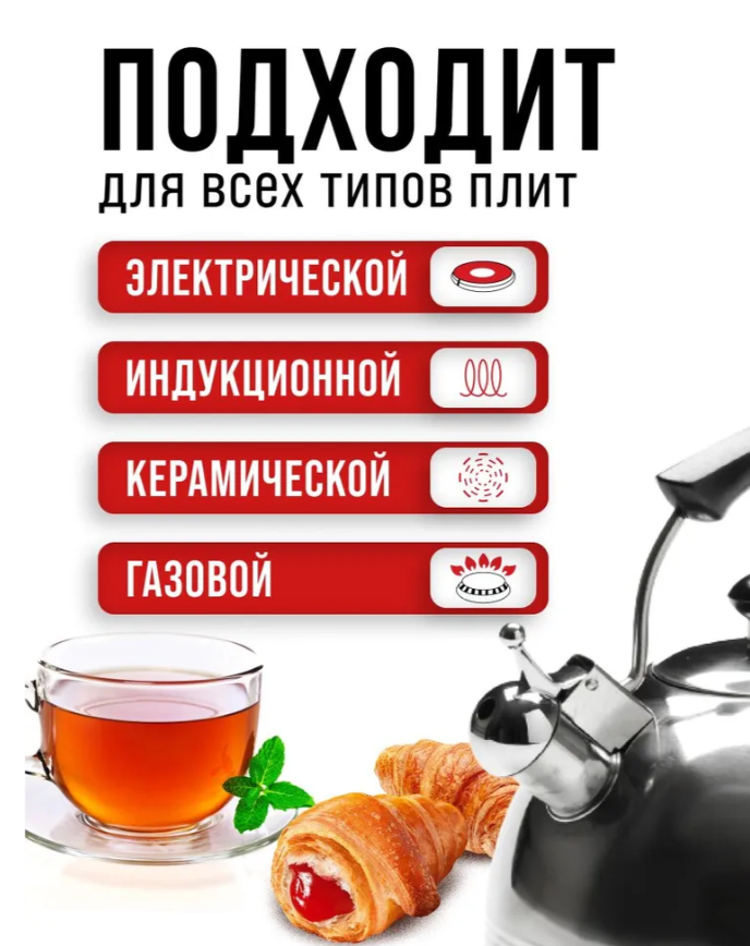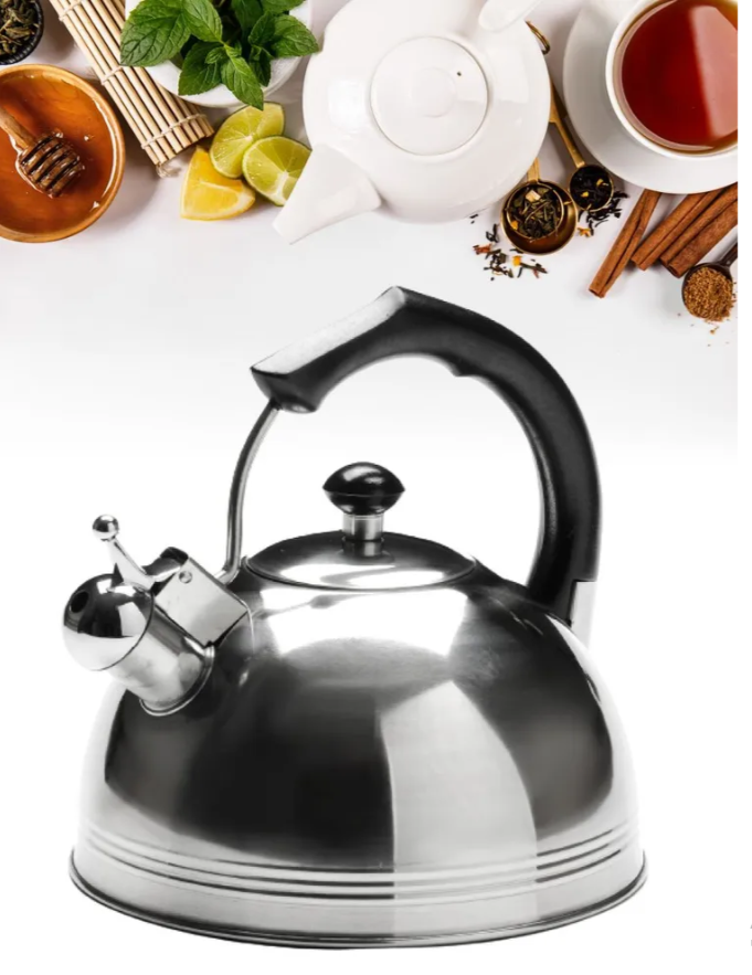 Красивый чайник со свистком 2,5 л MAYER&BOCH изготовлен из высококачественной нержавеющей стали. В эксплуатации долговечен и стойкий к коррозии. Уникальная стальная конструкция дна обеспечивает высокую теплопроводность и равномерное распределение тепла. Для комфортного использования чайник оснащен фиксированной эргономичной ручкой из пластика. На носике расположена ручка для удобного открывания носика. Чайник железный для газа плотно закрывается крышкой, защищая от ожогов паром. А носик чайника оснащен насадкой-свистком, который позволит контролировать процесс кипячения воды. Подходит для использования на всех типах плит, кроме индукционных. Для содержания в идеальном состоянии, металлический чайник можно мыть в посудомоечной машине. Чайник со свистком для плиты поможет быстро и легко приготовить напитки, создаст теплую атмосферу в доме. Изделие подойдет как для ежедневного использования, так и для особых случаев. Чайник создан в элегантном дизайне и цвете. Не упустите возможность приобрести посуду для кухни!