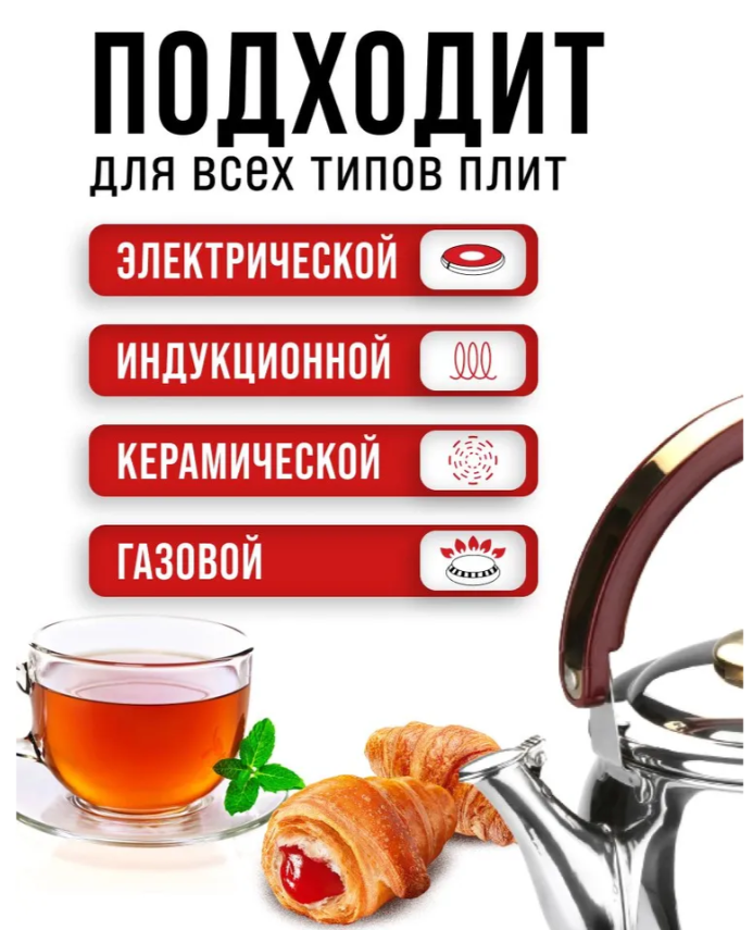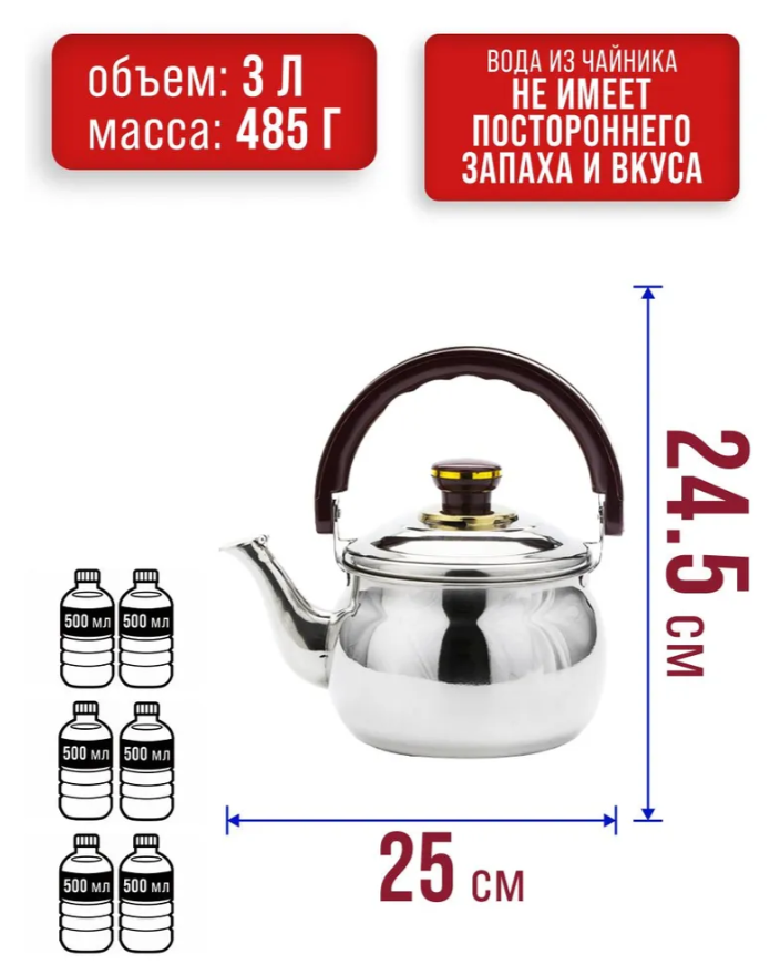Чайник со свистком 3 литра MAYER&BOCH из нержавеющей стали - это идеальное решение для вашей кухни. Его высокое качество обеспечивает надежность и долговечность. Благодаря своей функциональности и эстетичному дизайну, он станет неотъемлемой частью вашего быта. Свисток на крышке контролирует процесс кипячения, а широкое дно равномерно распределяет тепло. Эргономичная ручка из термостойкого пластика обеспечивает удобство использования. Наслаждайтесь натуральным вкусом и ароматом напитков с посудой MAYER&BOCH каждый день. Чайник из нержавеющей стали MAYER&BOCH объемом 3 литра станет незаменимым помощником на вашей кухне. Изделие не только обладает превосходными техническими характеристиками, но и отличается стильным дизайном. Чайник из нержавейки не подвержен коррозии и не впитывает запахи, что позволяет сохранять насыщенный вкус и аромат вашего любимого напитка. Чайник со свистком для газовой плиты из нержавейки 3 л идеально подходит для быстрого и равномерного нагрева воды. Свисток на носике сигнализирует о готовности воды, что позволяет вам контролировать процесс кипячения. Чайник для плиты 3 л нержавейка со свистком - это универсальный выбор для любой кухни. Он подходит для использования на всех типах плит, включая индукционные. Для содержания в идеальном состоянии, можно мыть в посудомоечной машине. Эта посуда сочетает в себе функциональность, качество и стиль, делая процесс приготовления чая максимально удобным и приятным. Элегантный дизайн и красивое оформление позволит сделать его отличным подарком на любой праздник.