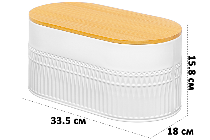 Хлебница 33,5*18*15,8 см "Белая" с бамбуковой крышкой