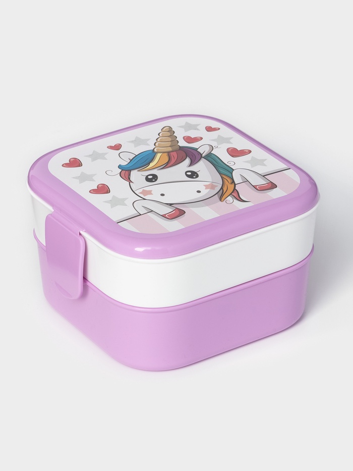 [Ланчбокс детский для школы122] Ланчбокс с единорогом — яркий и практичный контейнер для обеда, перекуса или хранения лакомств. Два отделения по 400 мл удобно разделяют фрукты, печенье, сэндвичи или десерты — идеально для малышей и дошкольников. Сиренево-белый дизайн с изображением единорога понравится ребёнку, а квадратная форма обеспечивает устойчивость и компактность в портфеле или детской сумке.