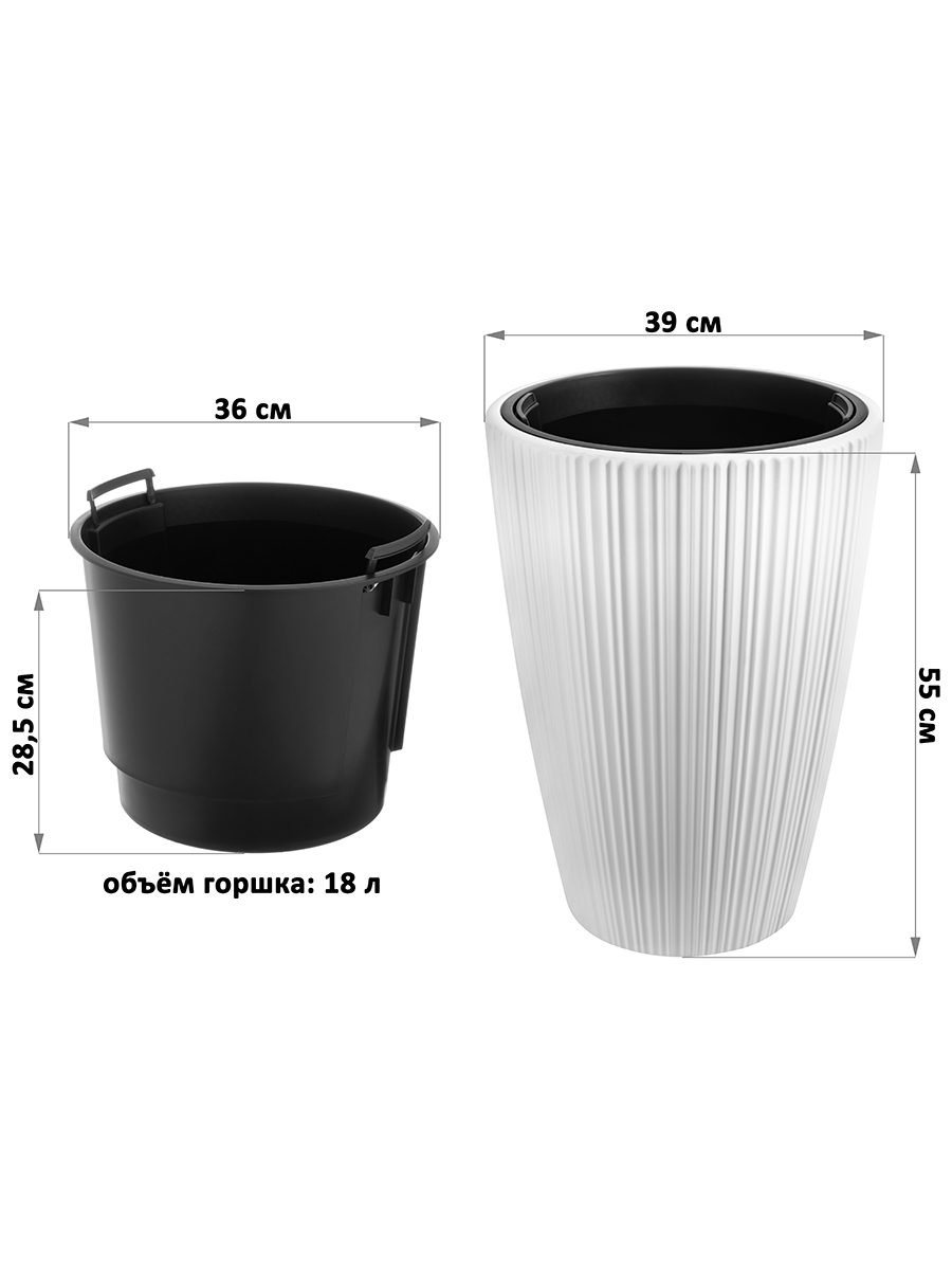 Кашпо круглое 45 л 39*39*55 см "Токко" белый (модель 667)