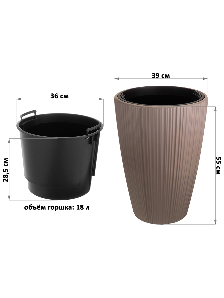 Кашпо круглое 45 л 39*39*55 см "Токко" серо-коричневый (модель 667)