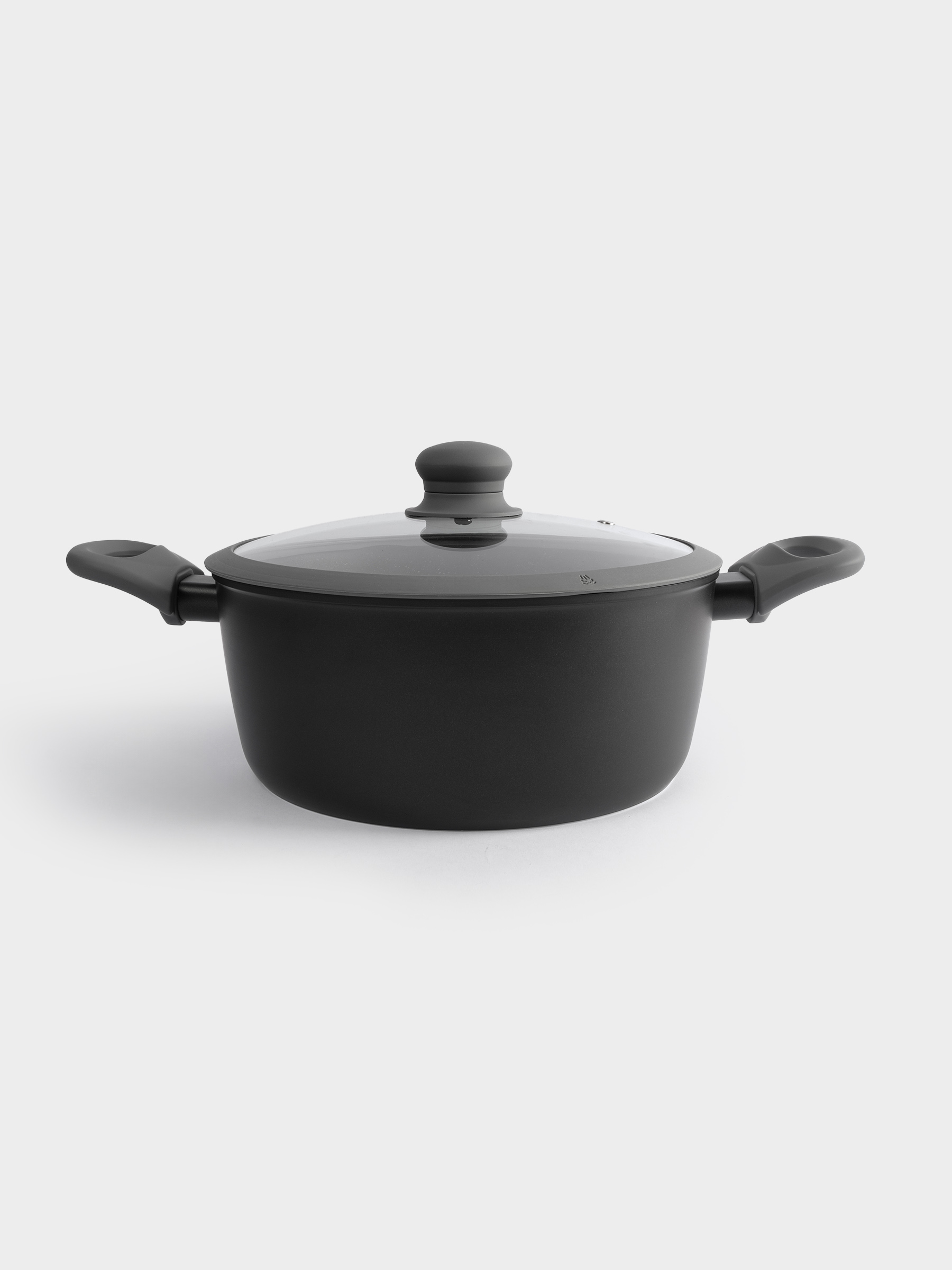 Кастрюля, 24 см, 3,9 л, с крышкой, с покрытием, алюминий, серо-черная, Robust