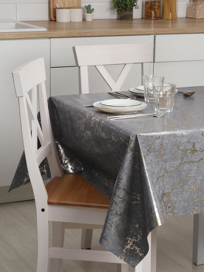 Клеёнка на тканевой основе Prudens в 3–4 раза прочнее обычных аналогов. Такой материал не мнётся и не деформируется. ПВХ-основа делает клеёнку максимально простой в уходе. Любая грязь устраняется быстро: с помощью простой влажной тряпочки вы без особых усилий приведёте стол в порядок.