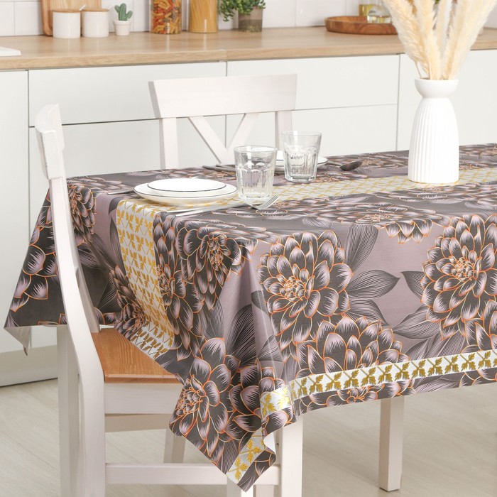 Клеёнка на тканевой основе «В саду» в 3–4 раза прочнее обычных аналогов. Такой материал не мнётся и не деформируется. ПВХ-основа делает клеёнку максимально простой в уходе. Любая грязь устраняется быстро: с помощью простой влажной тряпочки вы без особых усилий приведёте стол в порядок.