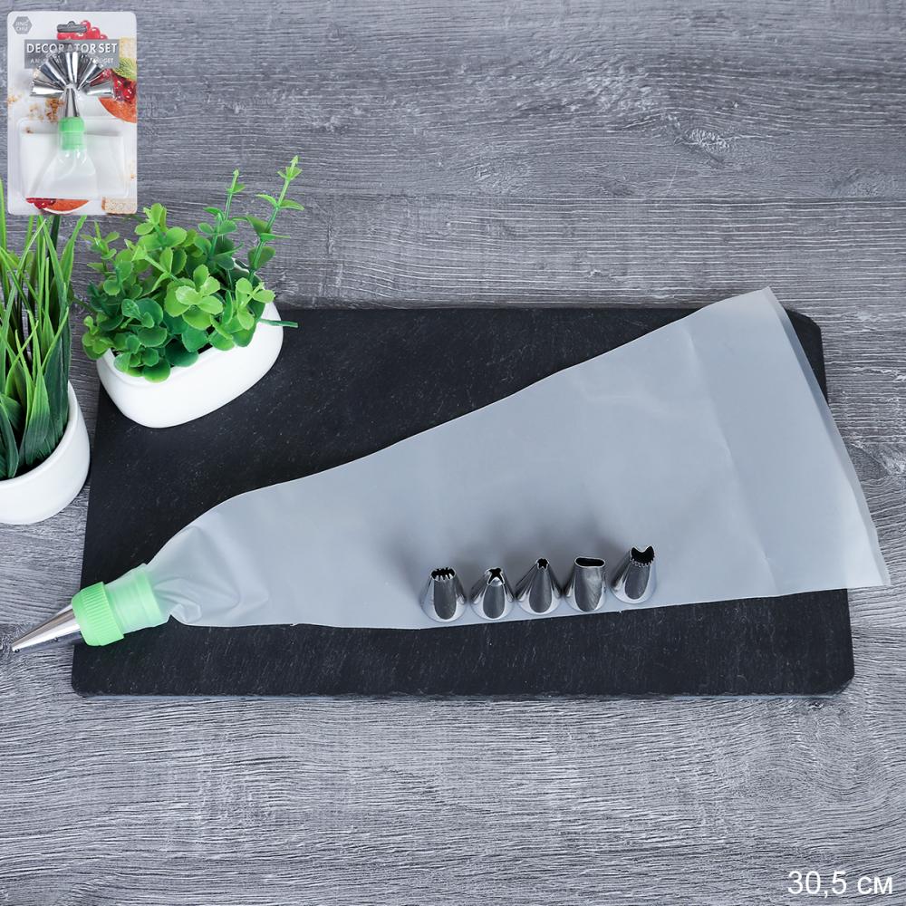 Кондитерские насадки малые 6 штук с мешком и адаптером /основание 18 мм / 534-332 /уп 288/