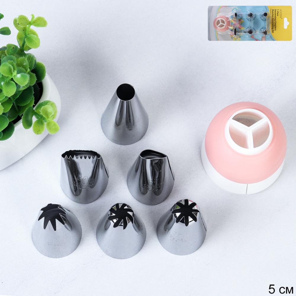 Кондитерские насадки средние 6 штук с адаптером для формирования цветного крема /основание 28 мм / 658-358 /уп 144/
