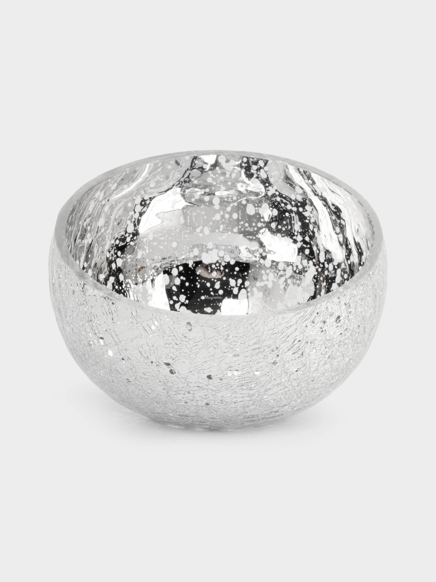 Конфетница, 15х12 см, стекло, серебристая, Кракелюр, Craquelure