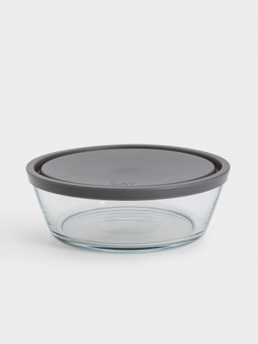 Контейнер, 1,1 л, стекло/пластик, круглый, серый, Basis