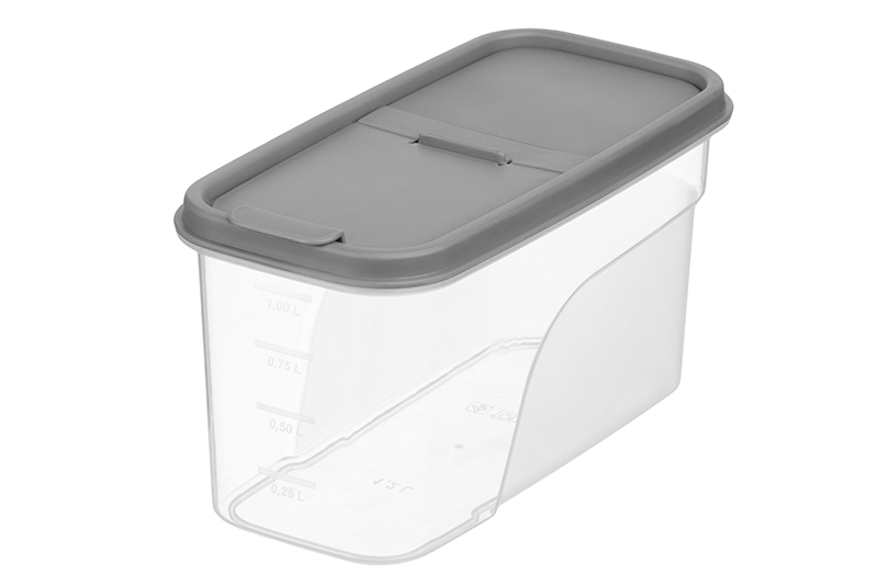 Хорошая банка, удобный объем. Пластик отличного качества. Крышка удобно открывается.