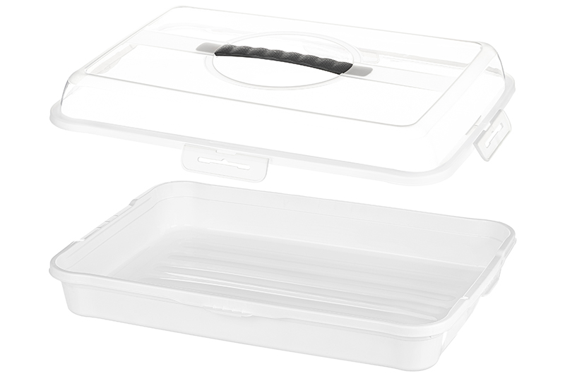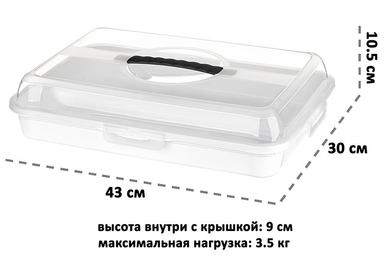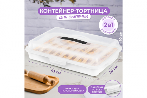 Контейнер для выпечки 43*30*10,5 см, прямоугольный, белый/прозрачный (модель 608)