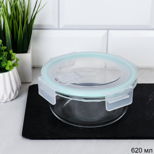 Контейнер круглый крышка с клапаном 620 мл стекло / AF-620 /уп 36/