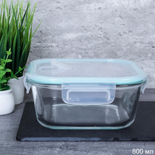 Контейнер квадратный крышка с клапаном 800 мл стекло / BXW-800ZFTQ /уп 36/