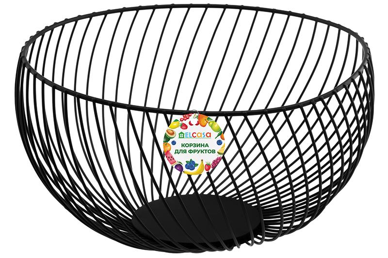 Декоративная корзина для фруктов ELCASA 25,5х25,5х13 см изготовлена из прочного металла с пудровым покрытием. Внутренний диаметр корзинки 25 см, диаметр круглого металлического основания 9 см. Фруктовница чёрного цвета имеет стильный, но универсальный дизайн. Круглая чаша в виде металлической сетки подойдёт для хранения и сервировки яблок, бананов, апельсинов и мандаринов. Металлическое блюдо – это универсальное решение для интерьера вашего дома или офиса. Можно разместить в вазе свежие фрукты или виноград на кухне, а также украсить корзинкой гостиную или приемную. Фруктовница эстетично впишется в самые разные стили интерьера: лофт, сканди, минимализм и подойдёт для эстетичного хранения урожая из вашего сада. Удобный кухонный аксессуар для сервировки поможет организовать порядок на кухне. Сервировочная фруктовая подставка не только дополнит декор праздничного стола, но и подойдет для пикника или дачи. Такая стильная посуда порадует ваших гостей и сделает застолье еще приятнее! Органайзер подойдёт для хранения конфет и других сладостей в пакетах в роли большой конфетницы. Не рекомендуется применять абразивные моющие средства. Нельзя мыть в посудомоечной машине. Красивая настольная корзина для овощей, фруктов и ягод станет приятным подарком на любой праздник. Подарите стильный кухонный инвентарь своим близким – такая вещь всегда пригодится в быту. Сетчатая корзина для фруктов станет украшением вашей столовой или приятным сюрпризом для родных и близких!