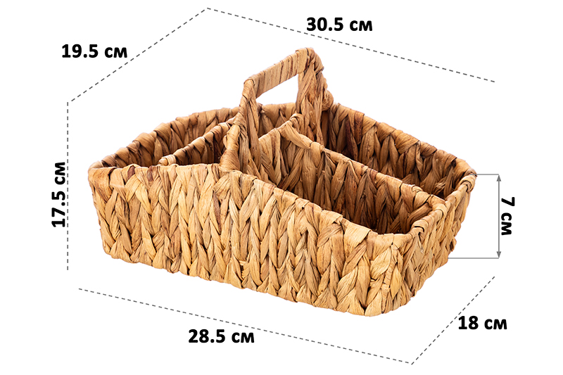 Корзина плетеная 30,5*19,5*17,5 см с ручкой, с 4-мя секциями, водный гиацинт