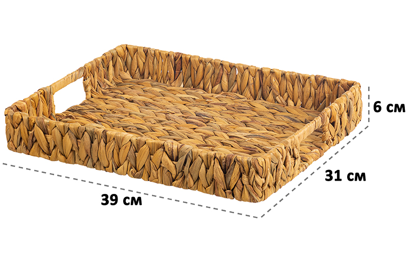Корзинка - поднос плетеная 39*31*6 см с ручками, водный гиацинт