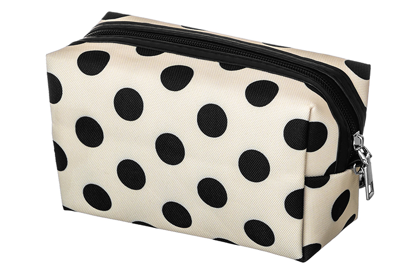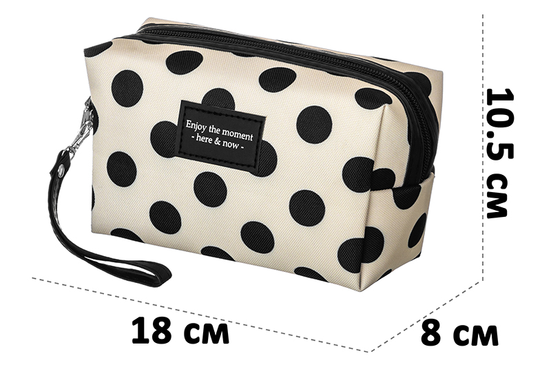 Косметичка - сумочка 18*8*10,5 см "Белая в черный горошек", с ручкой