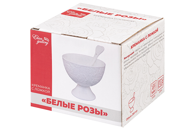 Креманка 260 мл 10,5*10,5*8,5 см "Белые розы" + ложка