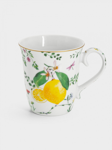Кружка, 275 мл, фарфор P, белая, Цветы и лимоны, Fleurs et Citrons. Материал: фарфор Рorcelain. Мыть тёплой водой с применением ЖМС. Можно использовать в СВЧ и мыть в посудомоечной машине.