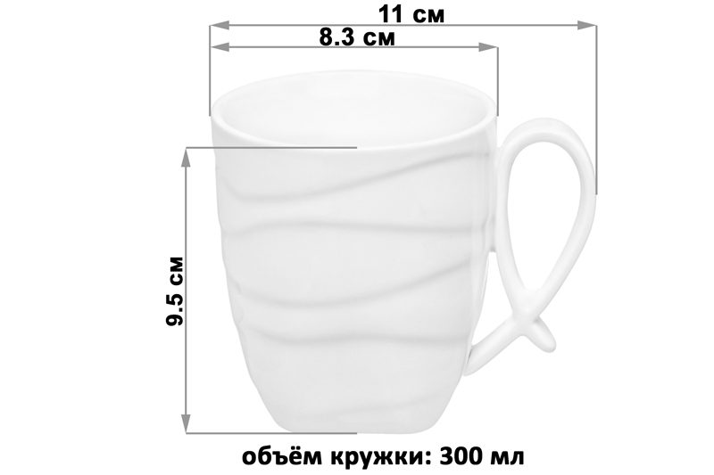 Кружка серии "Айсберг волны" объемом 300 мл поможет провести множество приятных чаепитий. Кружка выполнена из высококачественного фарфора и украшена рельефными узорами. Подходит для чая, кофе, сока, лимонадов и других напитков. Фарфор не впитывает цвет напитков и не деформируется от влаги. Фарфоровая кружка долгое время будет выглядеть, как новая! Изящная ручка выполнена в форме петли и хорошо лежит в руке. Кружка подходит для использования в микроволновой печи и посудомоечной машине. Поставляется в яркой картонной упаковке. Кружка из серии посуды "Айсберг волны" сможет стать настоящим украшением кухни или приятным подарком для ваших родных и близких!