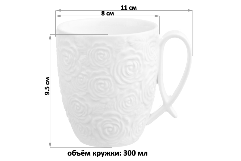 Кружка фарфоровая из серии «Розы» объемом 300 мл