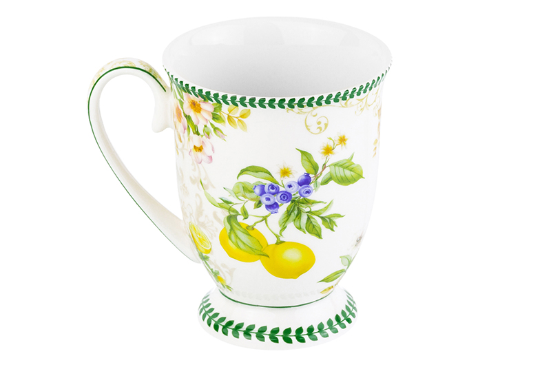 Кружка 300 мл 11*8*11 см "Лимоны" на ножке, NEW BONE CHINA