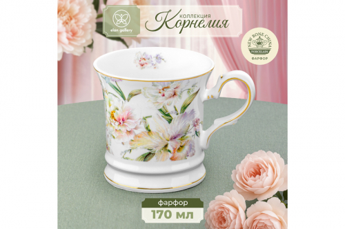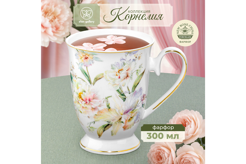 Кружка на изящной ножке из серии "Корнелия" от Elan Gallery предназначена для эстетичной сервировки вашего стола. Размер – 12х8,5х10,5 см, объём – 300 мл. Изготовлена из фарфора нового поколения new bone china, сочетающего в себе изящность и высокую прочность. За счёт гладкости изделие легко отмывается, поэтому сохраняет привлекательный внешний вид и практично в использовании. Плотная структура материала позволяет чашкам дольше сохранять температуру напитков. От костяного фарфора new bone china отличается большей экологичностью в производстве. Поверхность изделия овивают обворожительные белые пионы. Они выполнены в манере, вдохновлённой акварельным рисунком. Тонкая золотистая окантовка служит деликатным акцентом и подчёркивает изысканность. Декоративная кружечка поможет провести множество приятных завтраков с капучино и латте, а также уютные чайные вечера с конфетами, вафлями, другими десертами и сладостями. Подойдёт ценителям чая и кофе, которые любят пить из красивой и необычной посуды. Согрейтесь зимой любимым напитком: какао с маршмеллоу, ягодным чаем или горячим шоколадом. Летом освежитесь домашним лимонадом или морсом. Не рекомендуется применять абразивные моющие средства. Бокал нельзя использовать в посудомоечной машине и микроволновой печи. Поставляется в дизайнерской картонной коробке – благодаря ей вам не потребуется дополнительная подарочная упаковка. Фарфоровая сервировочная посуда станет чудесным подарком на любой праздник и добавит эстетики ежедневному чаепитию. Серия "Корнелия" от бренда Элан Галерея добавит вашему кухонному инвентарю лёгкости и элегантности, преобразив любую сервировку!