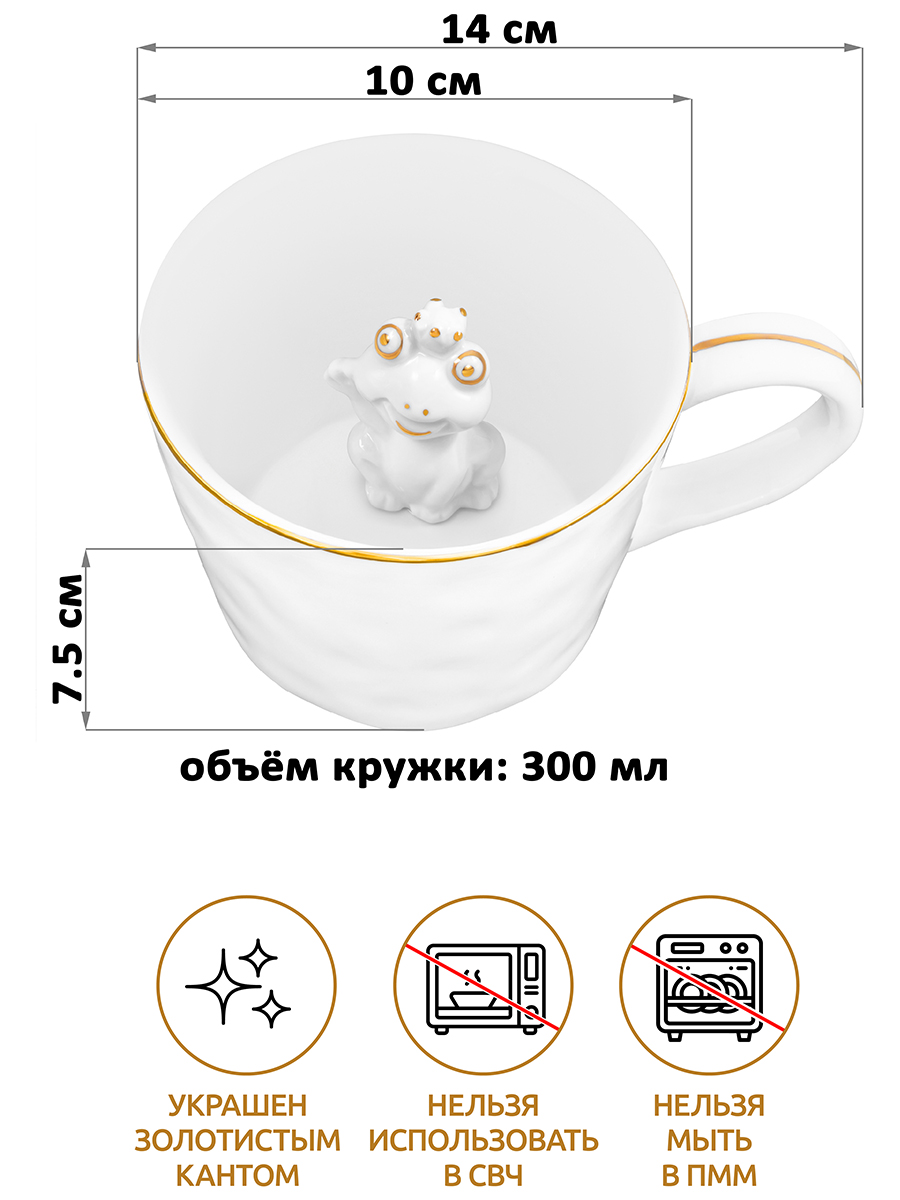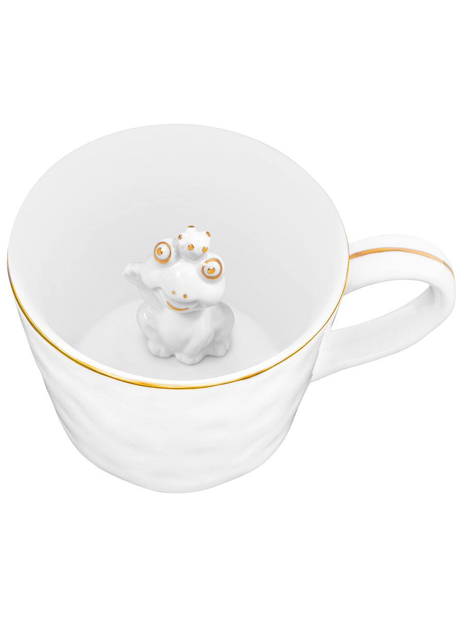 Кружка 300 мл 14*10*7,5 см "Царевна-лягушка" с фигуркой внутри, белый с золотом, фарфор