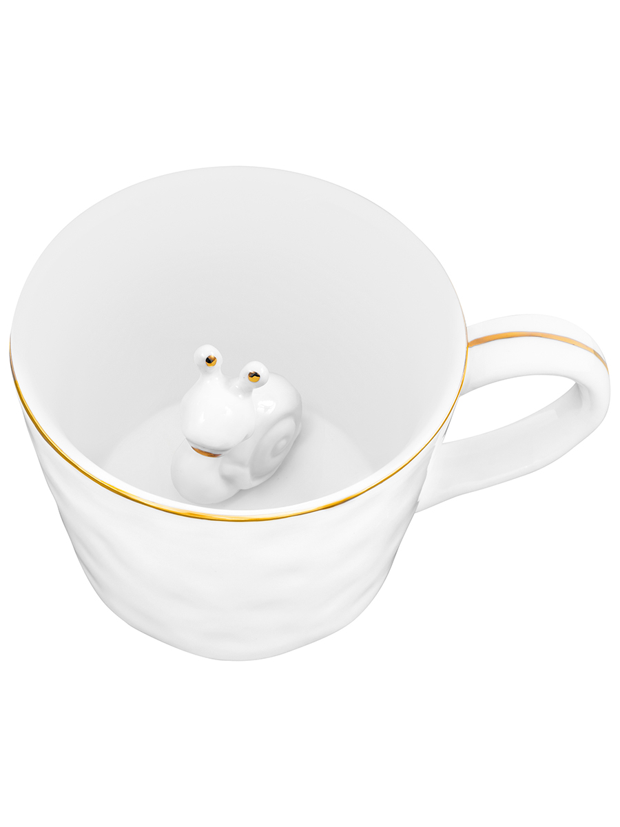 Кружка 300 мл 14*10*7,5 см "Улитка" с фигуркой внутри, белый с золотом, фарфор