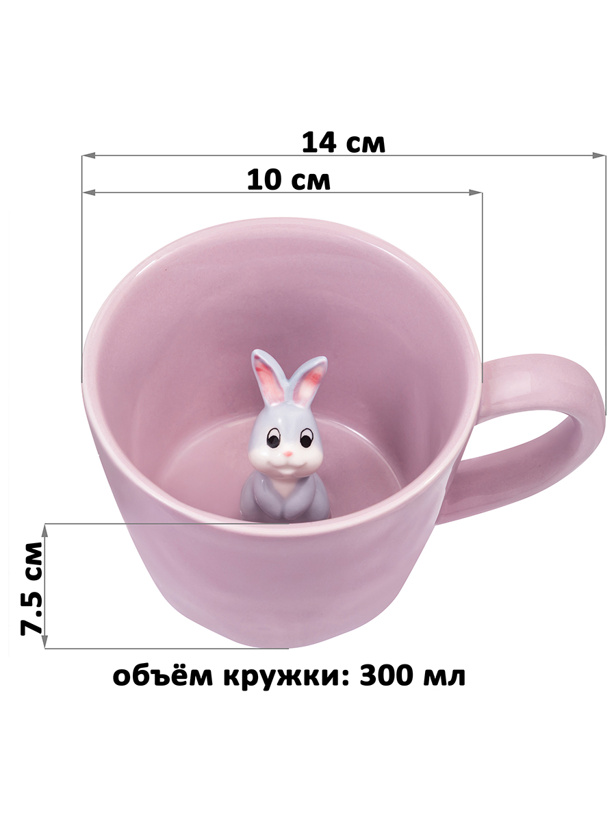 Кружка 300 мл 14*10*7,5 см "Зайчик" с фигуркой внутри, фарфор