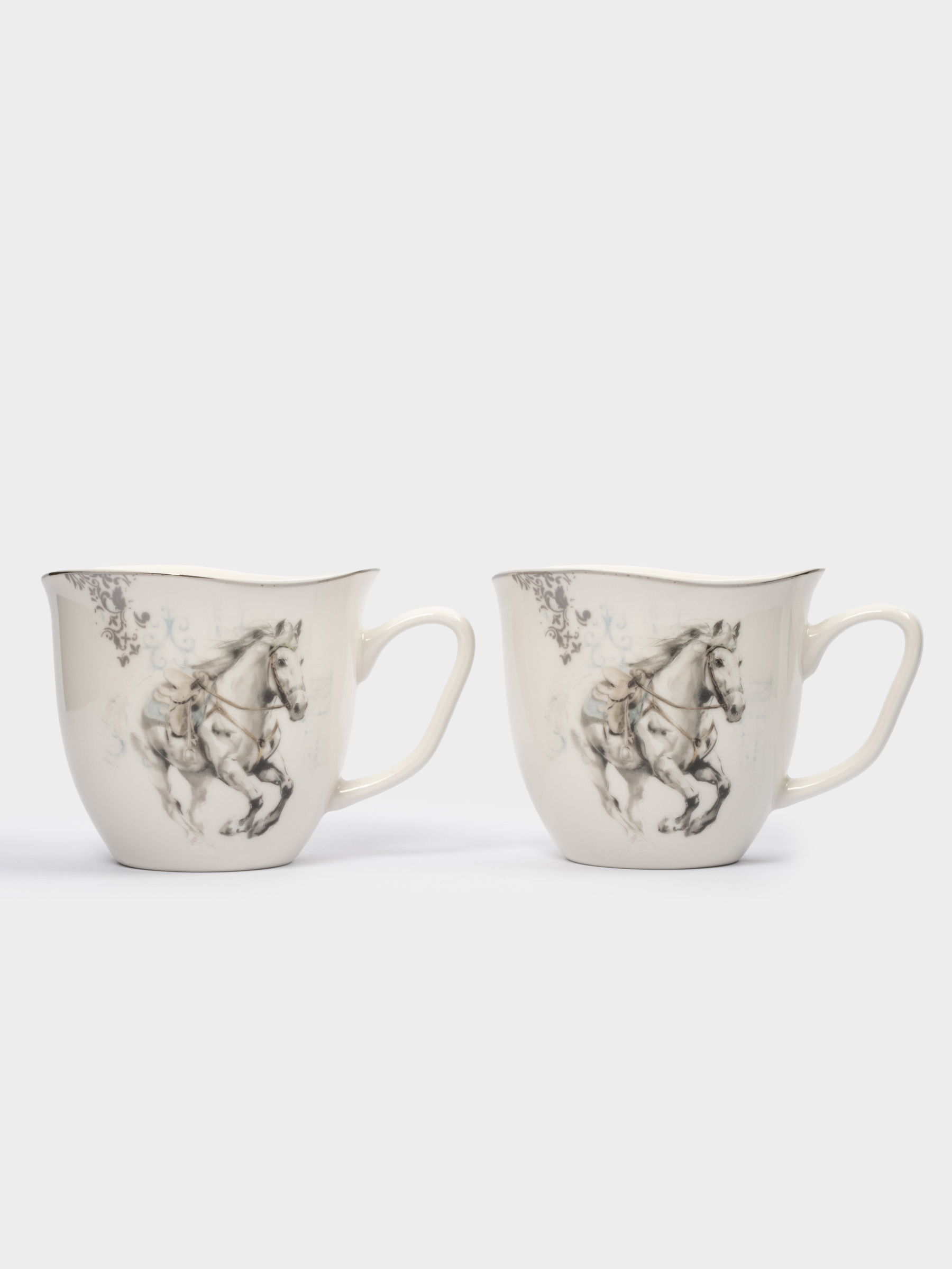 Кружка, 320 мл, 2 шт, фарфор N, белая, с серебристым кантом, Конь, White horse
