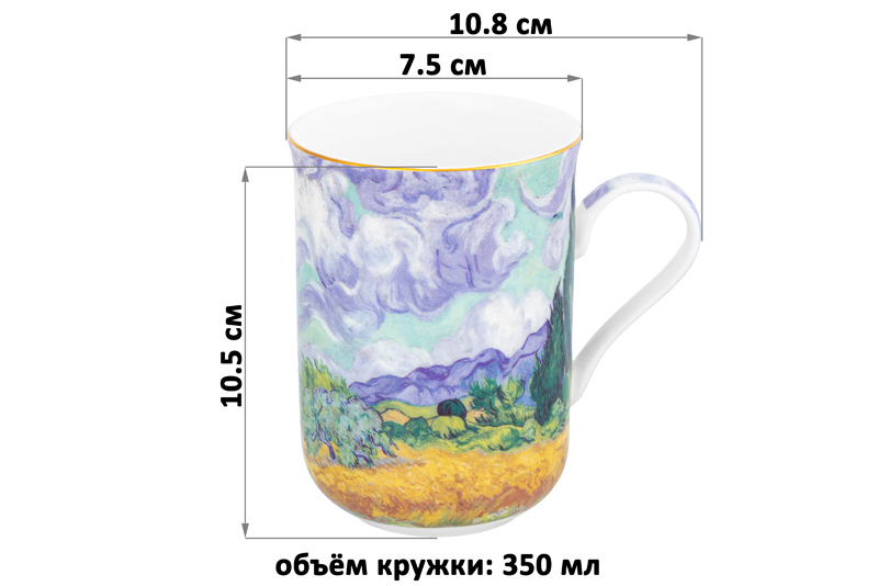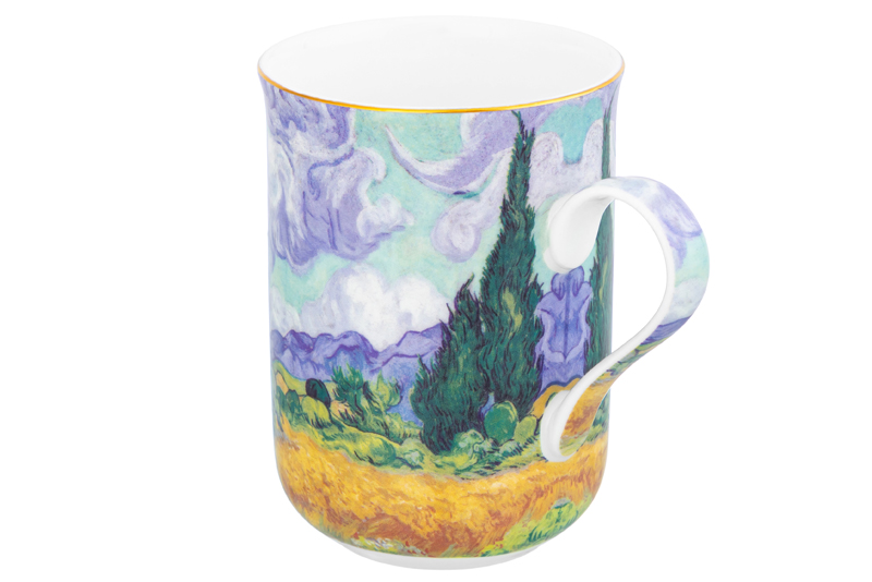 Кружка 350 мл 10,8*7,5*10,5 см "Пшеничное поле с кипарисами" NEW BONE CHINA