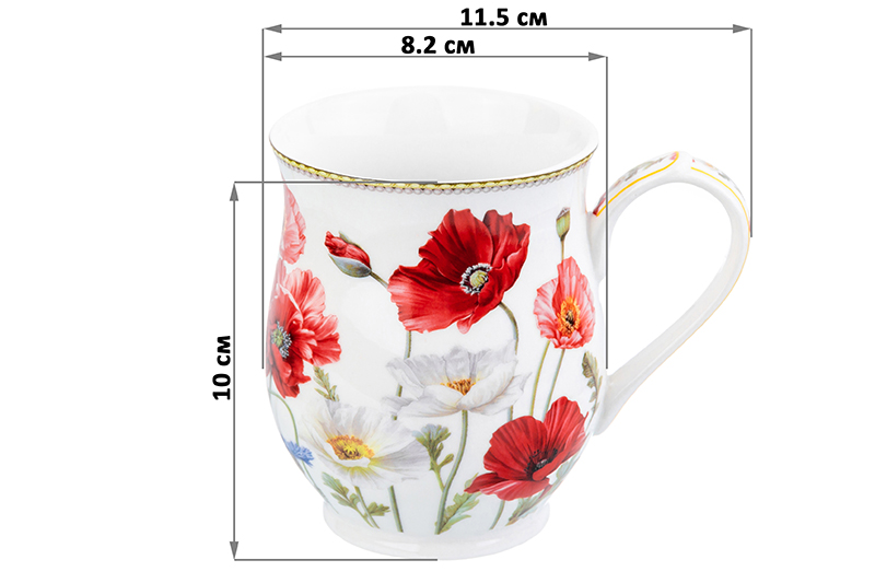 Кружка Elan Gallery "Маки" размером 11,5х8,2х10 см и объёмом 350 мл выполнена из фарфора нового поколения new bone china. New bone china сочетает в себе изящность и высокую прочность. От других видов костяного фарфора материал отличается большей экологичностью в производстве. Кружка имеет оригинальную форму бочонка. Серия "Маки" украшена красочным принтом с крупными цветами. Изображение красных и белых маков на фарфоре добавит ярких красок вашей кухне. В коллекции вы найдёте любые принадлежности для эстетичной сервировки. Кружечка подходит ценителям чая и кофе, которые любят пить из красивой и необычной посуды. Это отличный вариант для того, чтобы согреться горячим какао зимой и освежиться прохладным лимонадом летом. Интересный бокал с удобной ручкой украсит ваш стол своим стильным дизайном как на праздник, так и в будни. Пейте молоко или кефир и наслаждайтесь красивой картинкой! В офисе станет незаменимым предметом для чаепития или перерыва на капучино и латте. В отличие от керамики фарфор не впитывает цвет и запах напитка, легко отмывается и сохраняет свой привлекательный вид долгие годы. Не рекомендуется применять абразивные моющие средства. Можно использовать в микроволновой печи и мыть в посудомоечной машине. Поставляется в красочной картонной коробке. Фарфоровая посуда станет приятным подарком на любой праздник. Благодаря стильной коробочке вам не понадобится дополнительная подарочная упаковка! Наслаждайтесь любимыми напитками из этой кружечки сами, либо сделайте сюрприз своим близким! Серия "Маки" позволит собрать чайный или кофейный сервиз в едином стиле и станет украшением вашего дома.