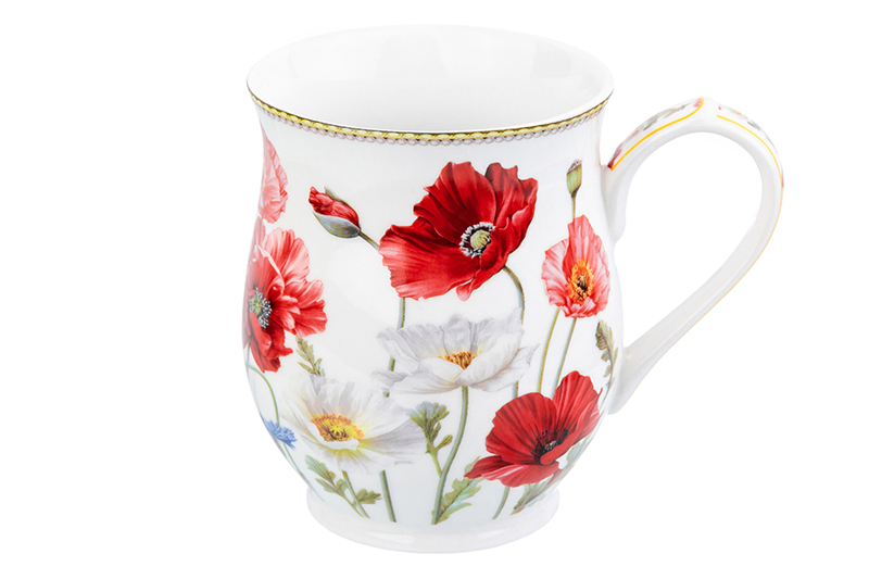 Кружка 350 мл 11,5*8,2*10 см "Маки" бочонок, NEW BONE CHINA
