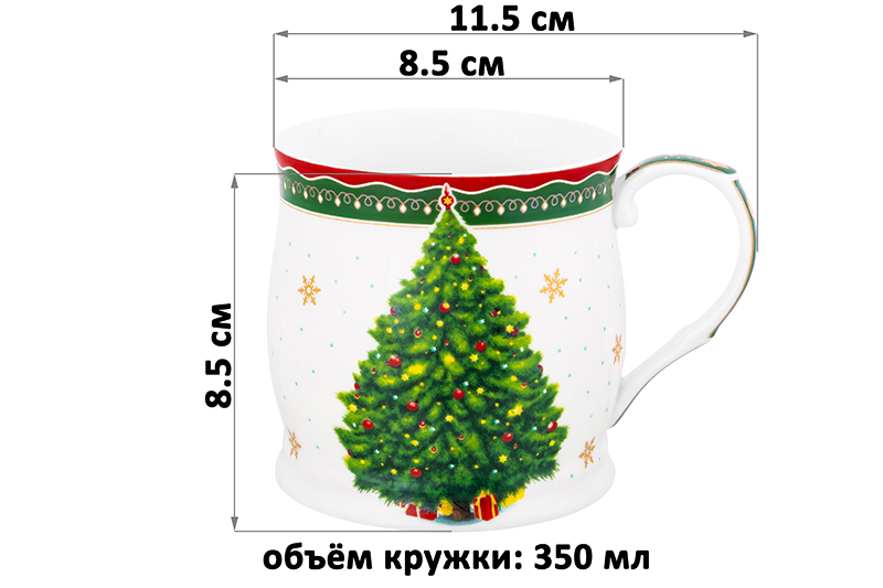 Кружка 350 мл 11,5*8,5*8,5 см "Новогодняя елка" зеленый узор NEW BONE CHINA
