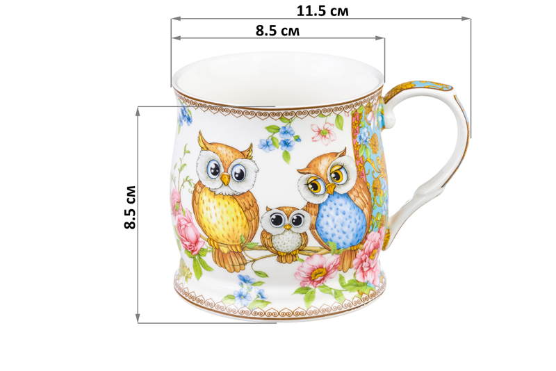Кружка 350 мл 11,5*8,5*8,5 см "Совушки", NEW BONE CHINA