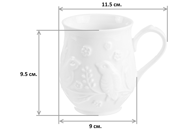 Кружка серии "Птички на ветке" объемом 350 мл выполнена из высококачественного фарфора. Изящный рельефный рисунок на кружке подходит любой сервировке и добавит уюта в каждый дом. Кружка вместительная с удобной ручкой прекрасно подходит для красивого чаепития или утреннего кофе. В серии посуды из белого фарфора представлен широкий ассортимент товаров для сервировки стола, которые, несомненно, впишутся в любой интерьер благодаря лаконичному дизайну, натуральным материалам и высокой функциональности. Такому подарку будет рада любая хозяйка!