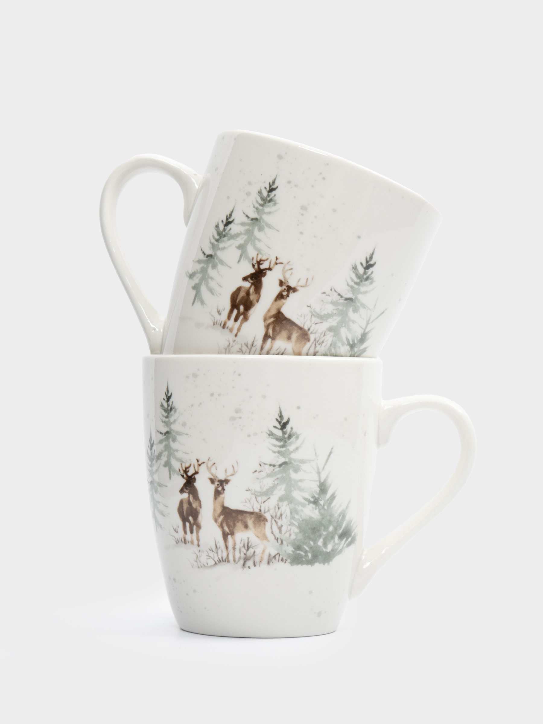 Кружка, 350 мл, 2 шт, фарфор P, белая, Олени в лесу, Maral